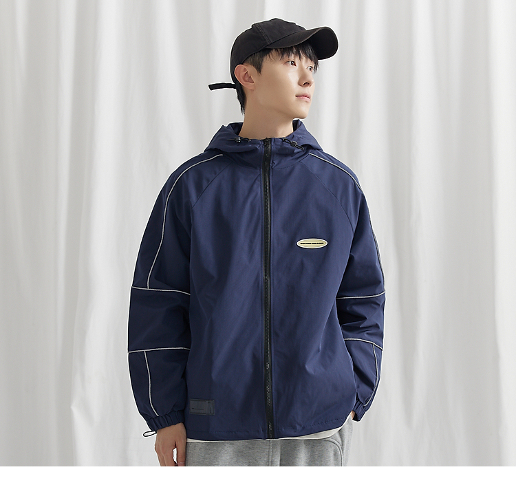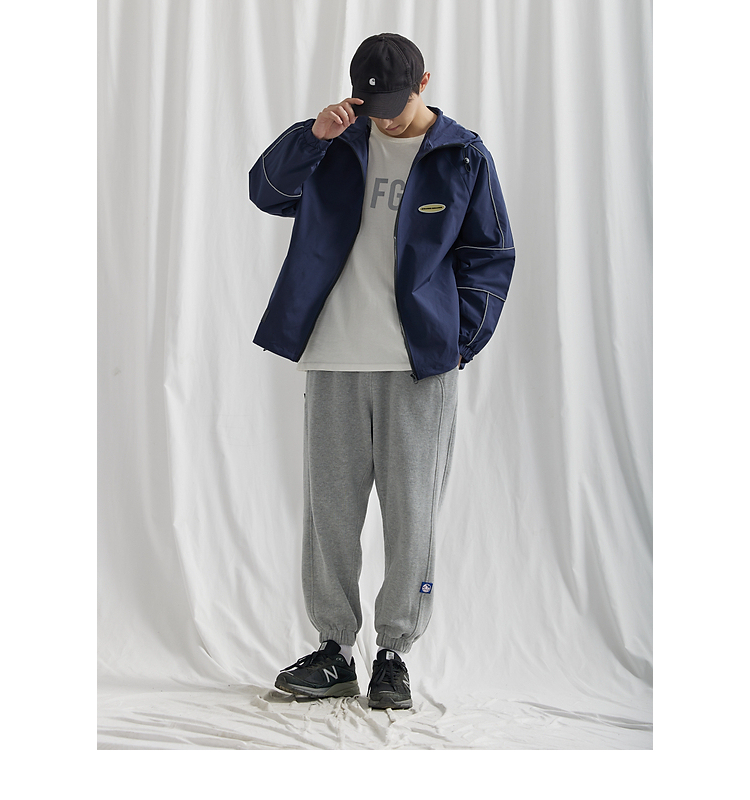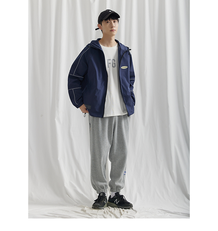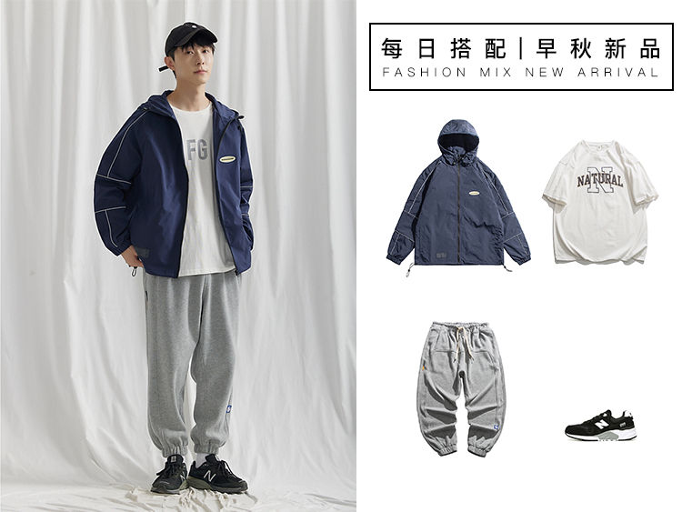 風格再多,大部分男生還是更喜歡運動風的穿搭,這套值得大部分男生借鏡的休閒運動風穿搭,別錯過!此搭配,上身選擇一款藍色連帽外套,衣身的風格設計,輕鬆的凸顯線條感!內搭疊穿一款白色短袖,胸前的字母印花,給款式增加了復古的感覺;下半身選擇一款灰色束腳褲,毛圈衛衣面料自帶的舒適感,大大提高了褲子的實穿性;鞋子選擇一款黑白配色的運動鞋即可,舒適又百搭!