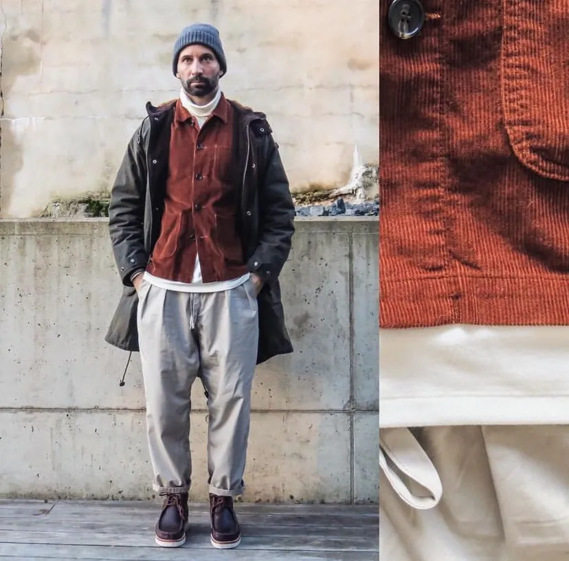 這種專屬於燈芯絨的紅棕色,簡直是就是為男士秋冬穿搭量身打造的顏色,不但能夠讓整個人看起來非常精神,燈芯絨的特殊質感簡直就是把高級感鑲嵌進了身體裡。
