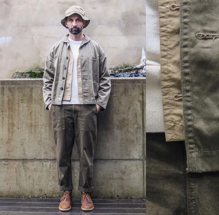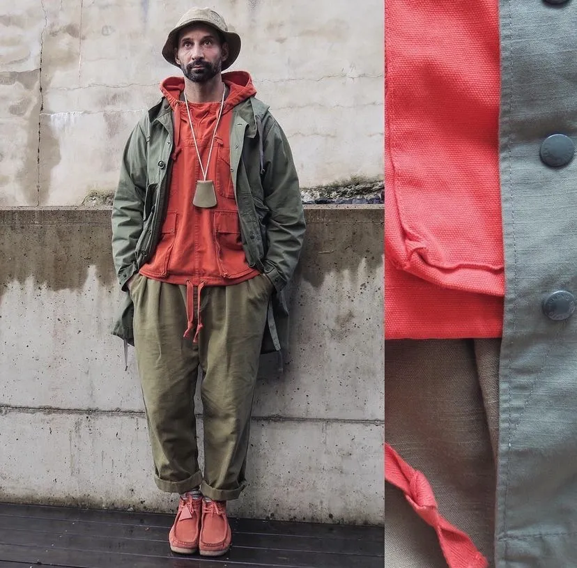 在 cedoceltic 的日常穿搭中,我發現工裝風的綠色是他的主色調。上下半身均以軍綠色為主,營造出了一種極其協調的視覺感。