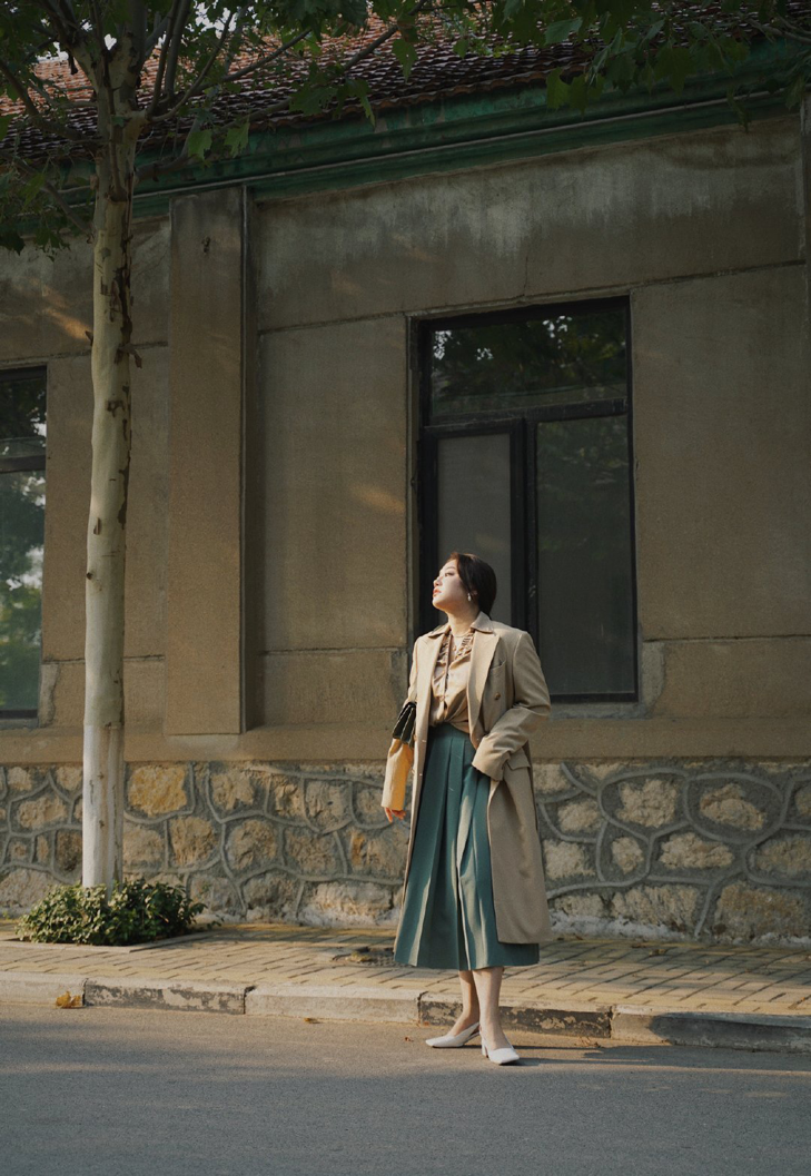 例如搭配經典的駝色大衣,選擇低飽和度的駝色襯衫,這種疊穿方式看起來很隨性,但是色彩風格更加高級耐看,能夠讓身材比例輪廓變得更纖細,畢竟深色系有收縮顯瘦作用,會讓整體身材變得更勻稱。