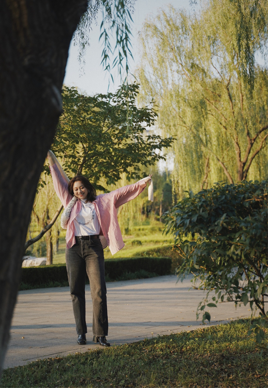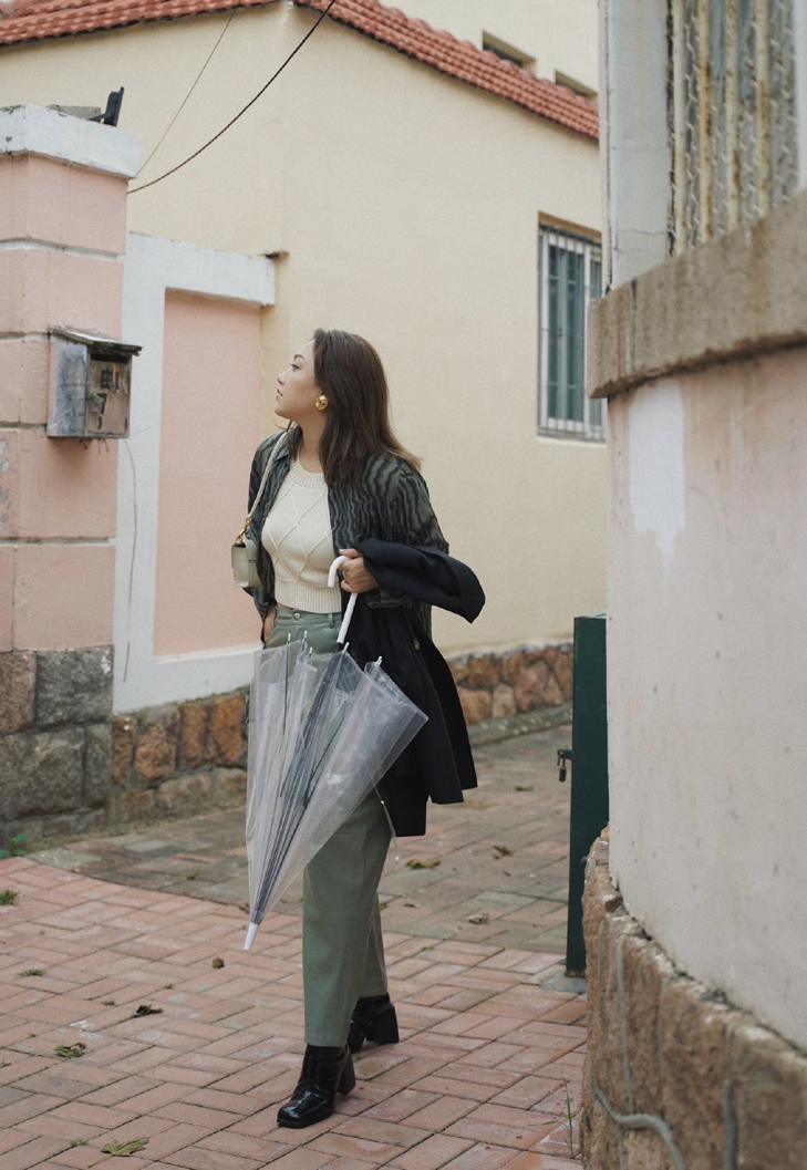 也可以偶爾嘗試淺色系,來搭配深色系,例如粉色的開衫外套,搭配駝色高腰褲,兩種色彩亮度對比明顯,但是風格呈現出來的狀態,既可以做到減齡效果,又能夠修飾身材。