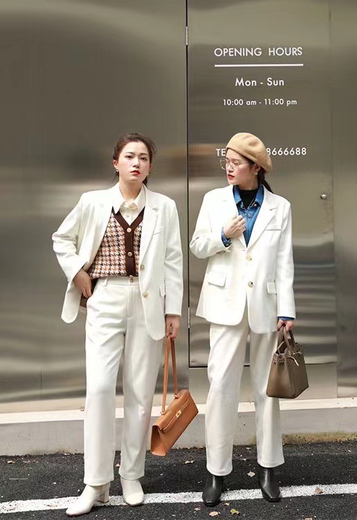 有很多小個子女生,都比較喜歡淺色系著裝,例如說白色的西裝套裝,顏色很容易顯臃腫,如果利用強調式搭配,把一些有特色的著裝,或者是顏色比較突出的著裝,都搭配在上半身,就會把視線引向上方,顯高的效果就會很明顯。