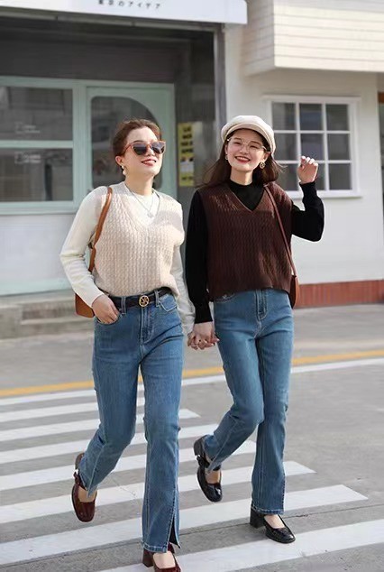 直筒褲在這幾年很受歡迎,因為這種褲子修飾性很強,高腰款式的直筒褲,往往會呈現出最好的搭配狀態,例如搭配比較臃腫的毛衣,風格也可以看起來更加利落一些。