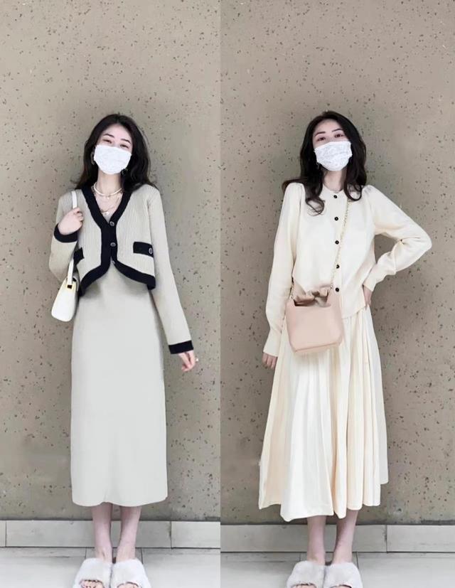 如果上半身身材較為嬌小,這樣的搭配穿起來是更加小女生的。搭配一件米白色的半身裙,也是超級好看的,半身裙會讓女生的身材和身高比例看起來更加完美。