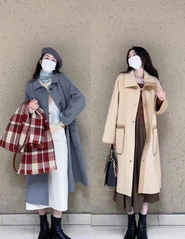這樣大衣搭配淺色的衣服更容易給人一種優雅的韓系氣質,內搭白色針織毛衣,搭配復古的半身裙。穿出韓系女主的氣質,溫柔甜美,但卻不失自己的風格。