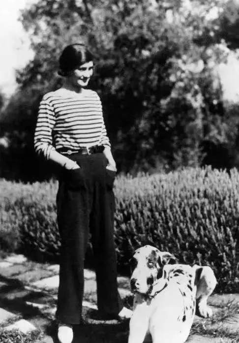 他的設計靈感來源於男性的運動衫,在 1924 年Channel女士赴英格蘭旅行時,借穿西敏公爵的粗毛呢外套時受到啟發,她將花呢與羊毛、絲綢、棉花結合起來,賦予了他們更高級的時尚。
