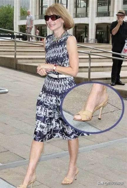 確實,裸色高跟涼鞋對於拉長腿部線條的效果相當明顯,而且適合的裸色看起來就讓鞋變成了腿的延伸,自然和各種顏色的裙裝都能輕鬆應對。難怪有人說,這對鞋就像安娜的BOB頭髮型一樣,是半永久的。