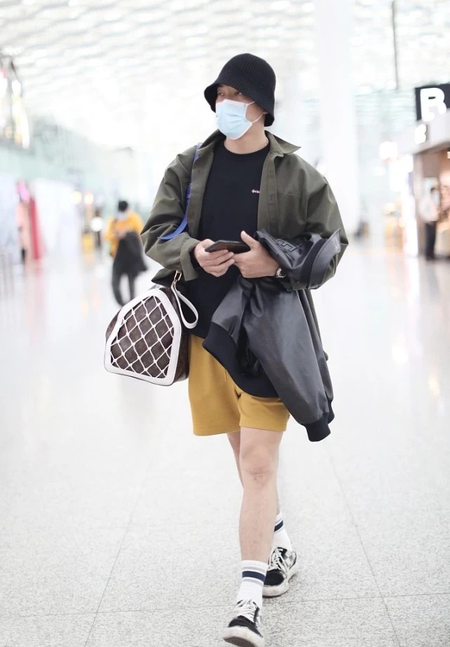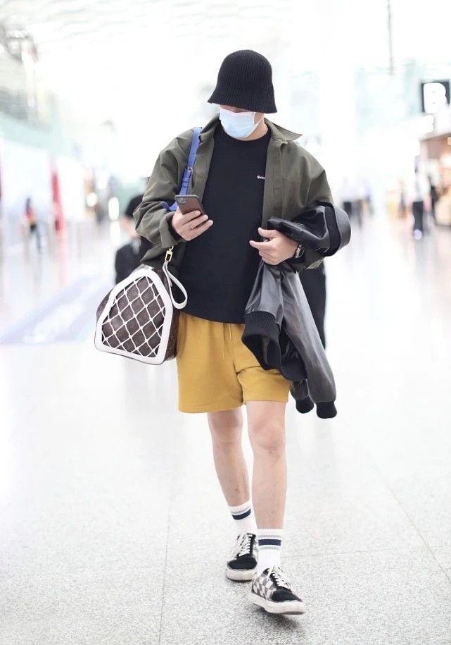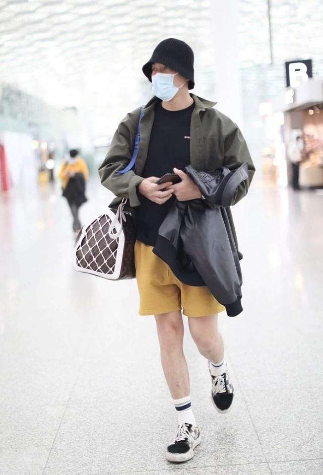 這個時候可能也會有人擔憂,款式太簡單會不會穿出「路人感」呢?對此張亮也做出了很好的應對方案,那就是在短褲和外套的顏色挑選上多用心,通過短褲薑黃色和外套橄欖綠的色彩搭配,以基礎黑色打底,讓造型亮眼而不花哨。