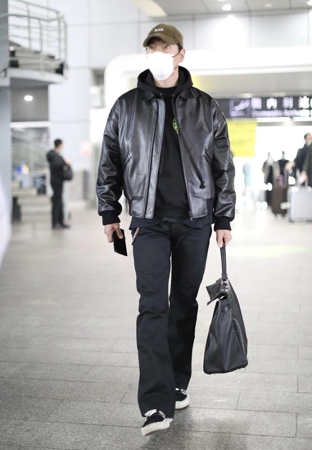張亮的很多搭配都是有規律可循的,更加便於學習和借鏡。經典黑長褲和短款皮夾克的穿搭,就通過內搭的變換穿出「上繁下簡」搭配效果,既顯氣質又很有時髦高級感。