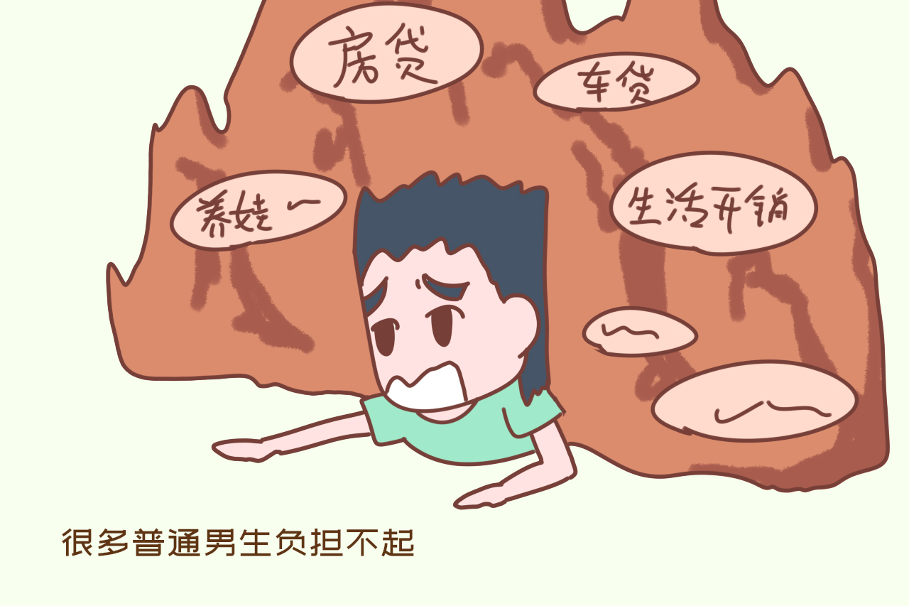 而男方意味著婚後要供兩套房,還有生活開支,還要養孩子,生活壓力太大了,男人得問問自己錢包頂不頂得住。如果男方不買,女孩也願意,那就意味著男孩要住在女孩家的新房裡,這不就是入贅,很多男人心裡接受不了。