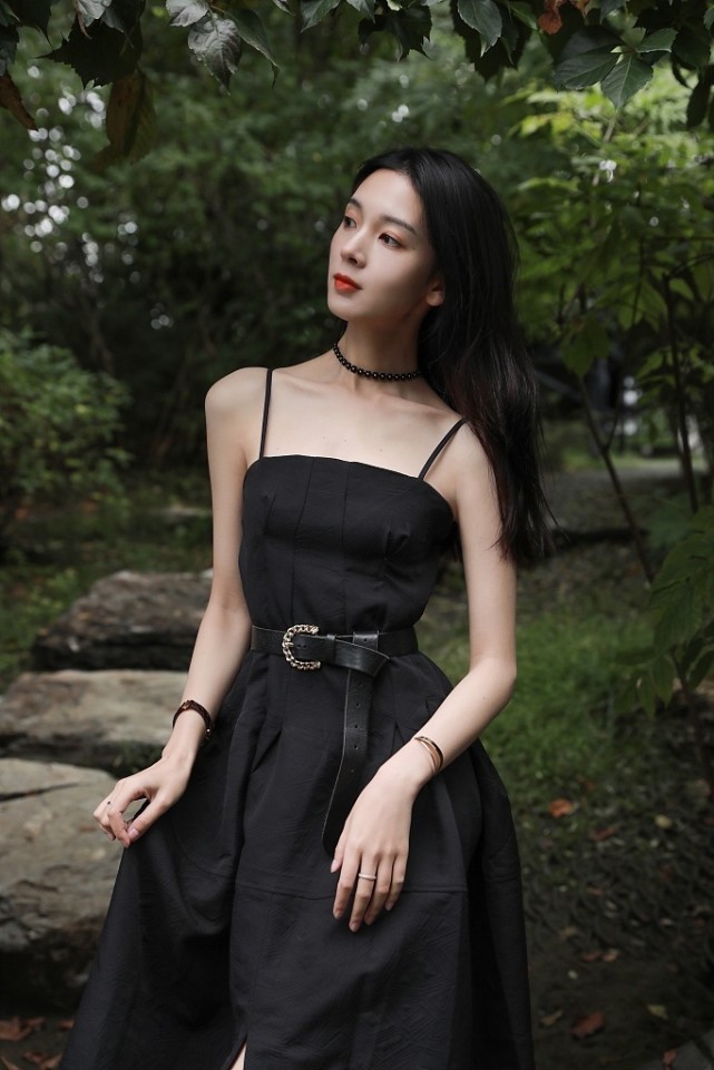裙裝的長度決定了整體穿搭風格的走向,以灰色的吊帶裙裝為例,有著灰色高級感,加持著褶皺感的網紗來修飾,打造了一種收緊而又顯纖細身材的魅力,根據網紗面料多打造的蓬松質感,體現了稚嫩而又減齡的時尚氣氛,而短款的裙擺設計恰好也能凸顯出一定的腿部線條,占據著身材優勢的女性大可以輕鬆進行選擇穿搭。