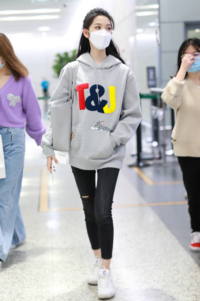 搭配上灰色的小腳褲來,寬鬆和緊身款式之之間的搭配結合,更有一種時尚感,顯得可愛、小巧,十分精緻養眼,也足以體現出清純感搭配的高級感與時尚感。