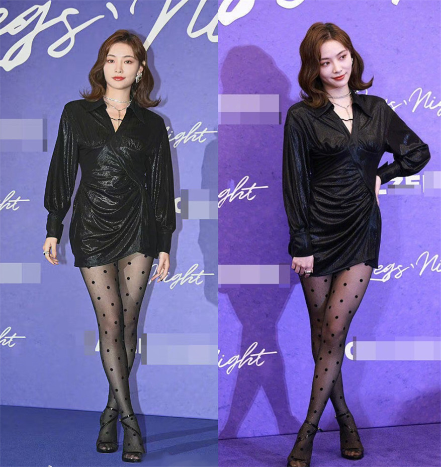 今年黑絲重新回歸,但是黑絲穿不好是非常容易顯廉價的,因為它本身就比較性感,所以盡量不要再搭配太多女性化的單品,例如同場許佳琪的搭配就不太對,需要人的氣質特別好特別高級才能hold住這樣的容易顯低俗的風格。
