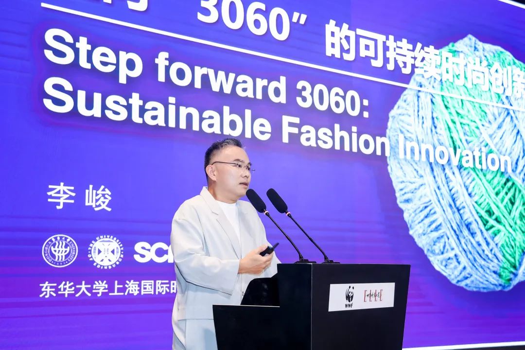 在第一場主題演講中,東華大學上海國際時尚創意學院院長李峻以《邁向「3060」的可持續時尚創新》為主題,道明了時尚產業所面臨的責任,他通過東華大學的可持續時尚踐行案例告訴我們,可持續時尚創新的時代早已到來。「時尚有很多層面,都說它是一種文化,往往有很多服裝設計師會說時尚的文化非常重要。其實在文化的背後,時尚是一種文明,代表了社會的文明程度以及著裝者的文明程度。當我們黨和國家都在提出構建雙碳目標和構建生態社會的時候,可持續時尚是一次時尚界的文明更新迭代。」