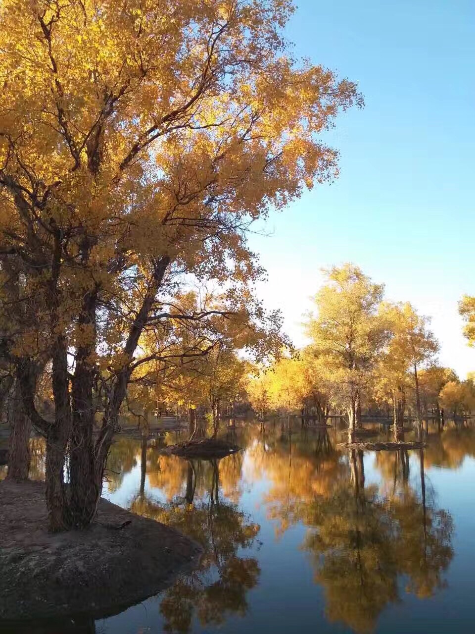 紅柳、河柳、柏楊等各種樹木以及成片的胡楊林,野麻鴨與白天鵝在遠處覓食,黑河煙林的美景令人驚嘆,誰也不願意率先離開。