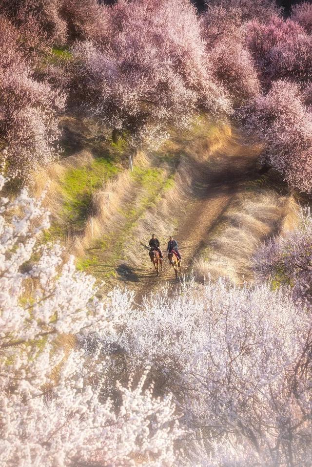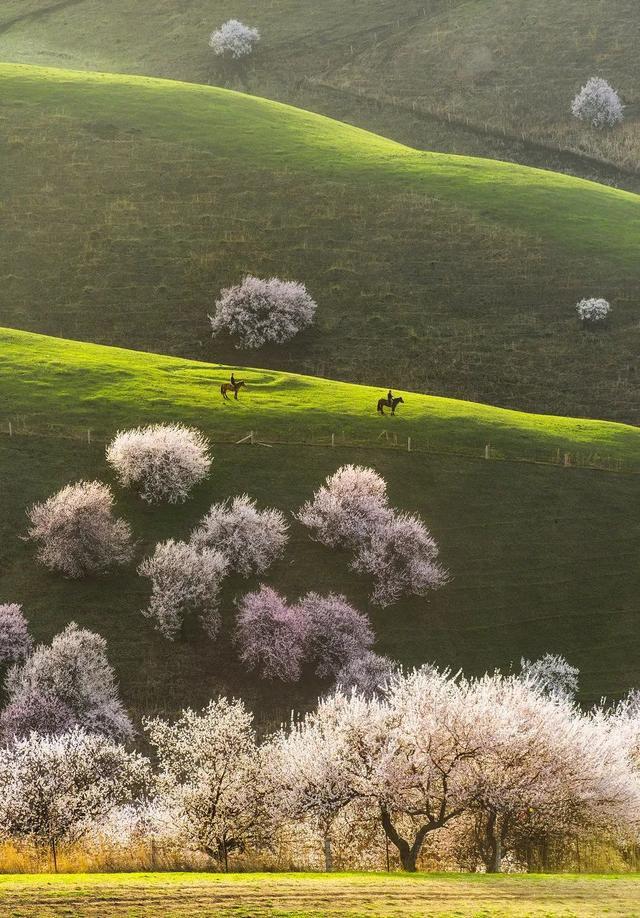 一場唯美的邂逅,許你一世相約。春天的伊犁,不只有綠色的草原,還有美麗的花海,皚皚的雪山,就像是傳說中的世外桃源。