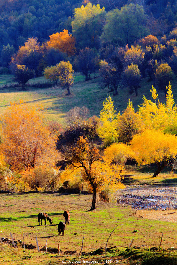 秋日的伊犁,遼闊、斑斕、喜悅,滿城盡帶黃金甲,樹葉、草原、牛羊,綿延成一幅流動的水墨畫,可愛、靈動、自然。