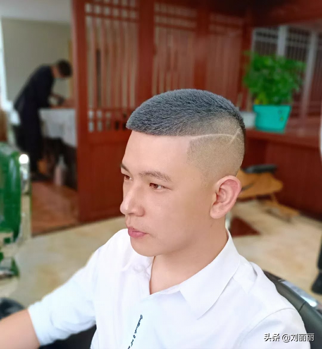 男士平頭可以說是一種不挑年齡的髮型,利落有型還精神,年輕男士可以選擇整頭推短,在側面劃一道弧形的線條,帥氣不失個性。