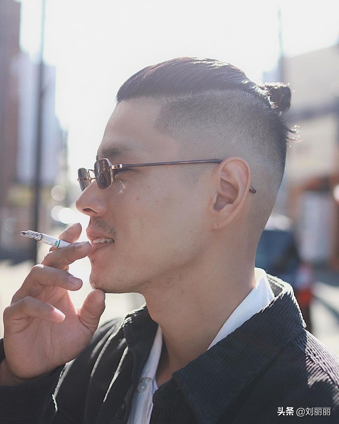 兩側推短幹乾淨淨還顯得很有男人的陽剛風范,頭頂簡單地紮一個發髻就OK,很有時尚的味道。