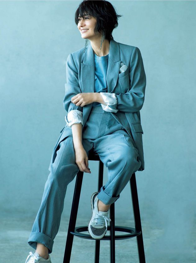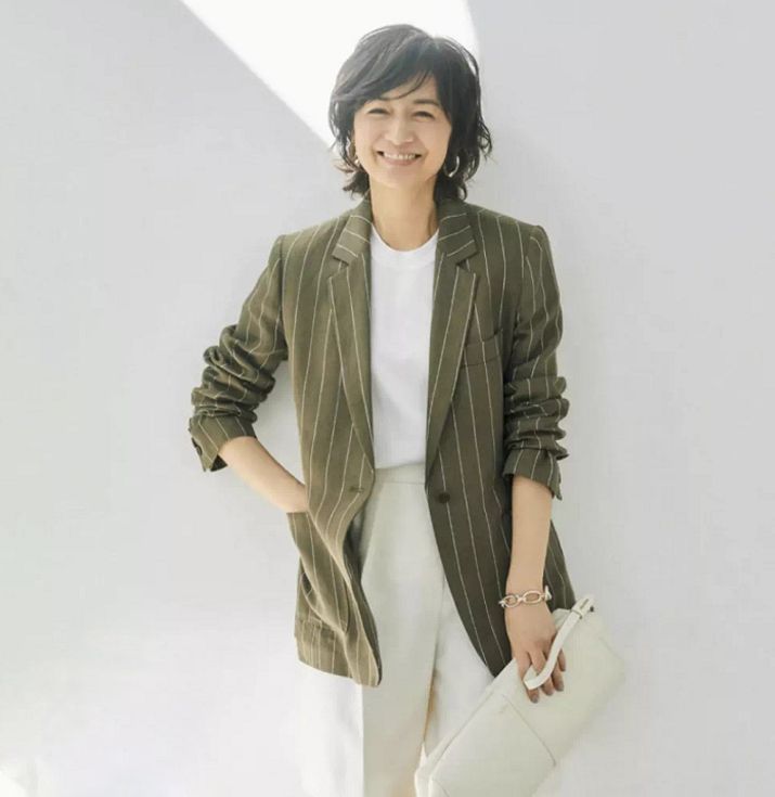 仔細看富岡佳子的穿搭,身著的單品都是一些有質感的基礎款,避免那些設計龐雜、花裡胡哨的款式,通過一些細節來提升造型感,例如落肩、小墊肩、圓領、V領等。
