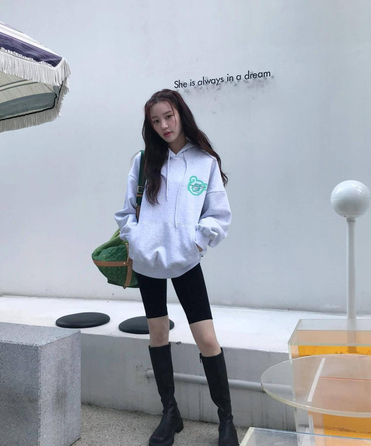 這種搭配形式,也是典型的運動風裝扮,但是需要注意的是,整體的著裝風格,一定要以更簡單的形式呈現。