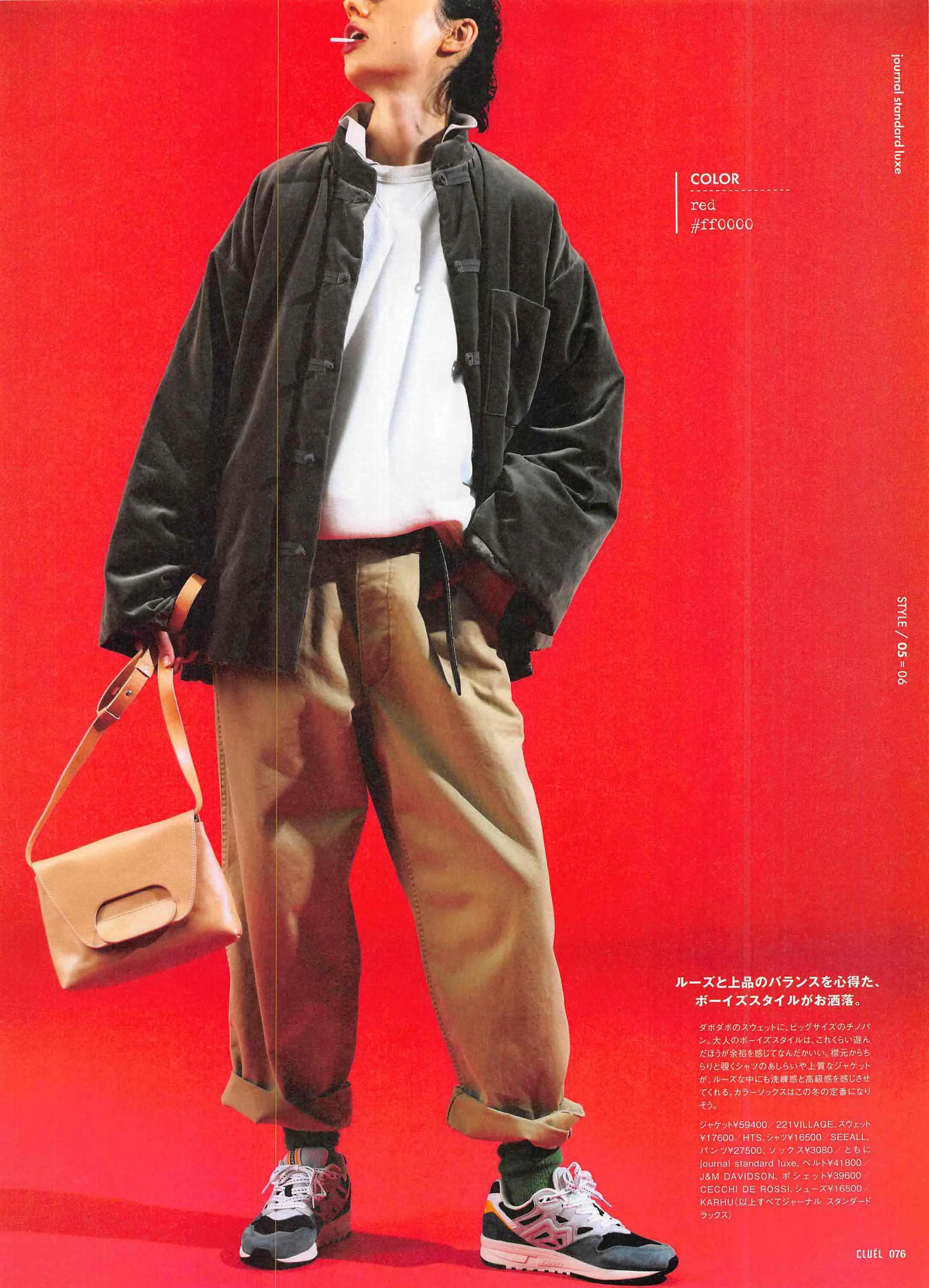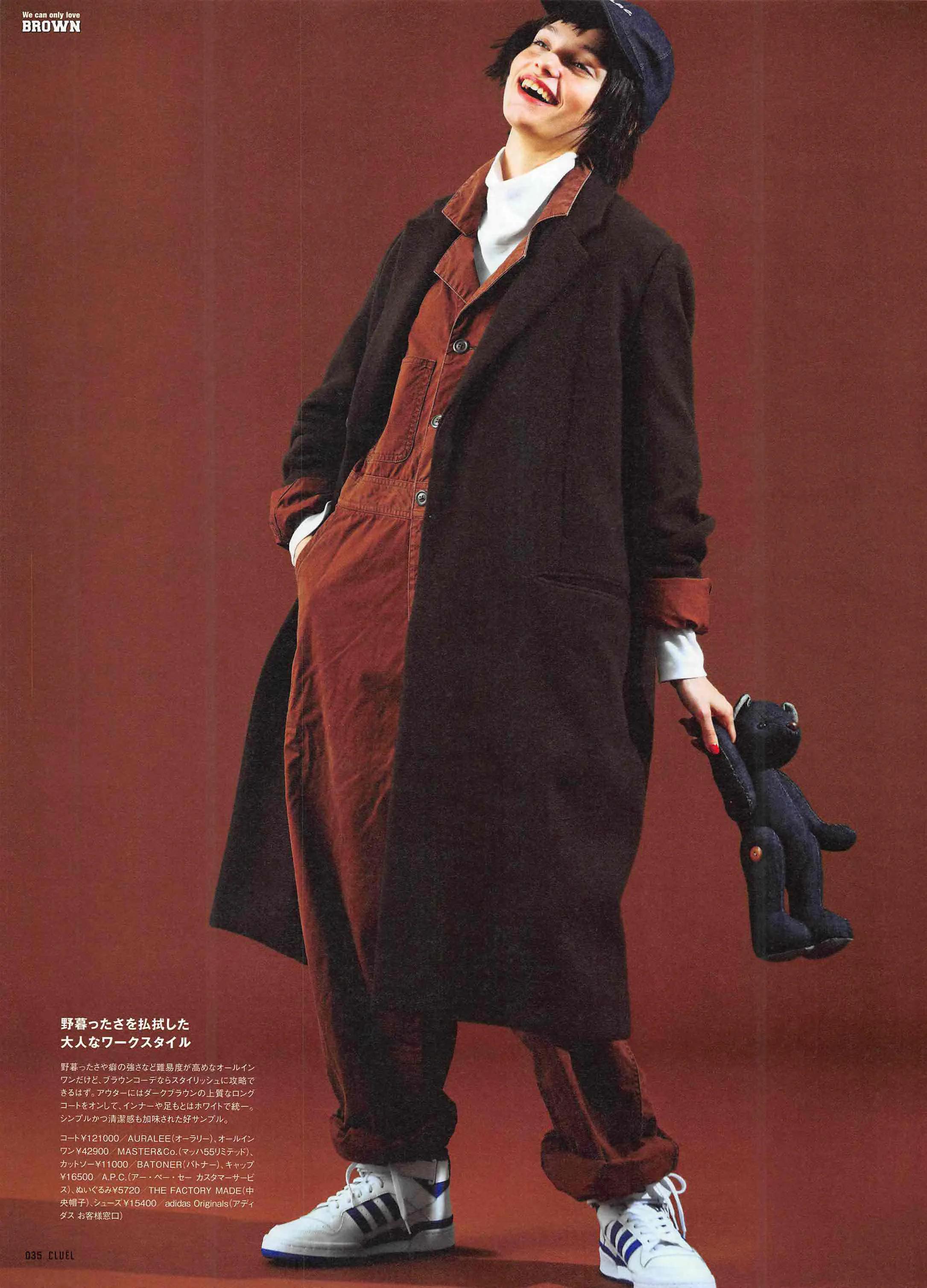 連體褲也能在秋冬有著大作為,作為搭配中的點睛之筆,暗紅色的燈芯絨面料已經相當有年代感了,內搭純色針織衫,套一件大衣出門,相當有腔調。