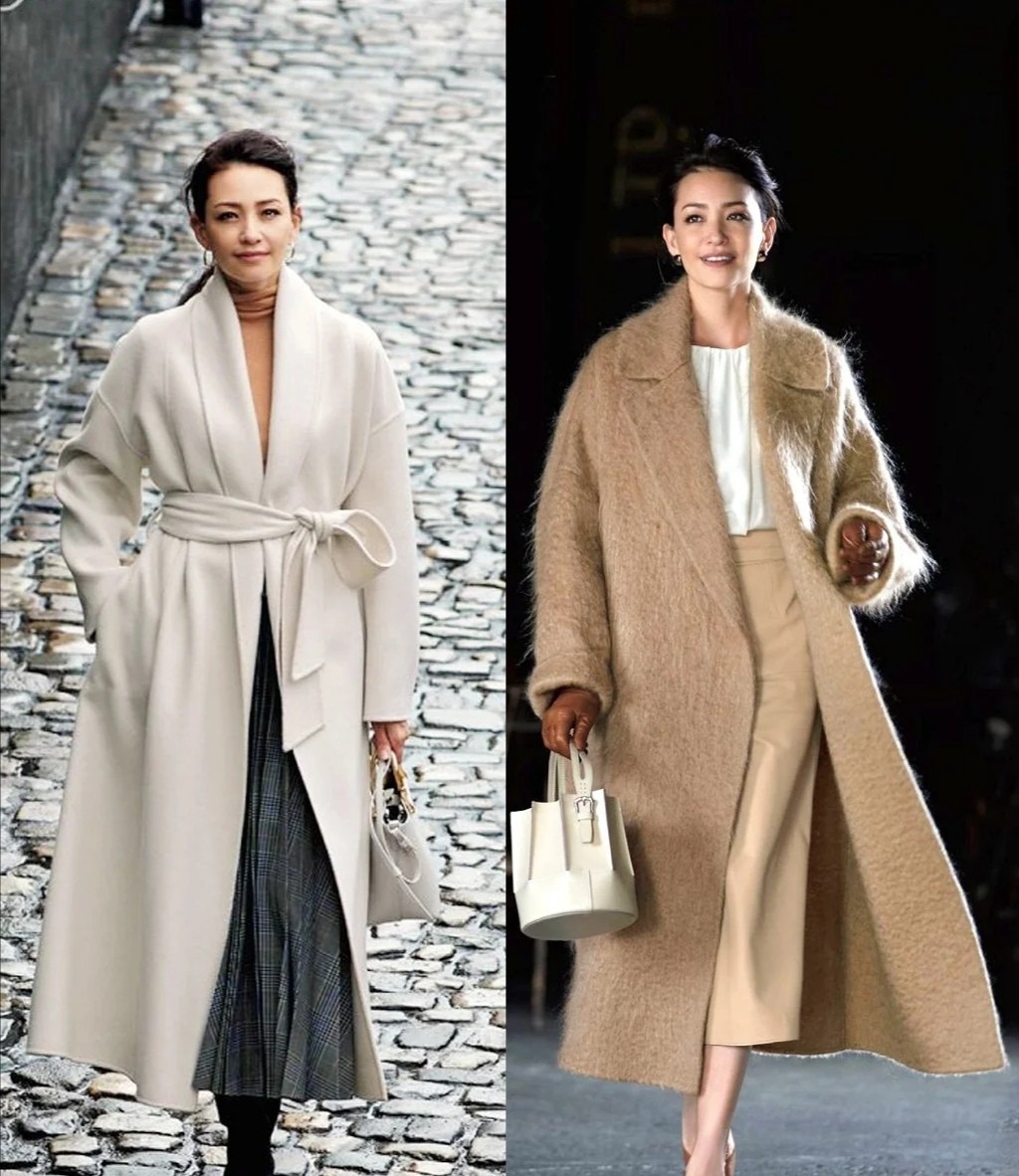 秋冬穿衣最重要的就是選款和搭配這兩大步驟,選款時,可以重點採用一些各種色彩、各種設計的長大衣,來營造出不同的風格和情緒。例如Rina身上的這兩款大衣,它們在外形構造上有不同,一個是有腰帶的拼接,另一款則隨性的散開。