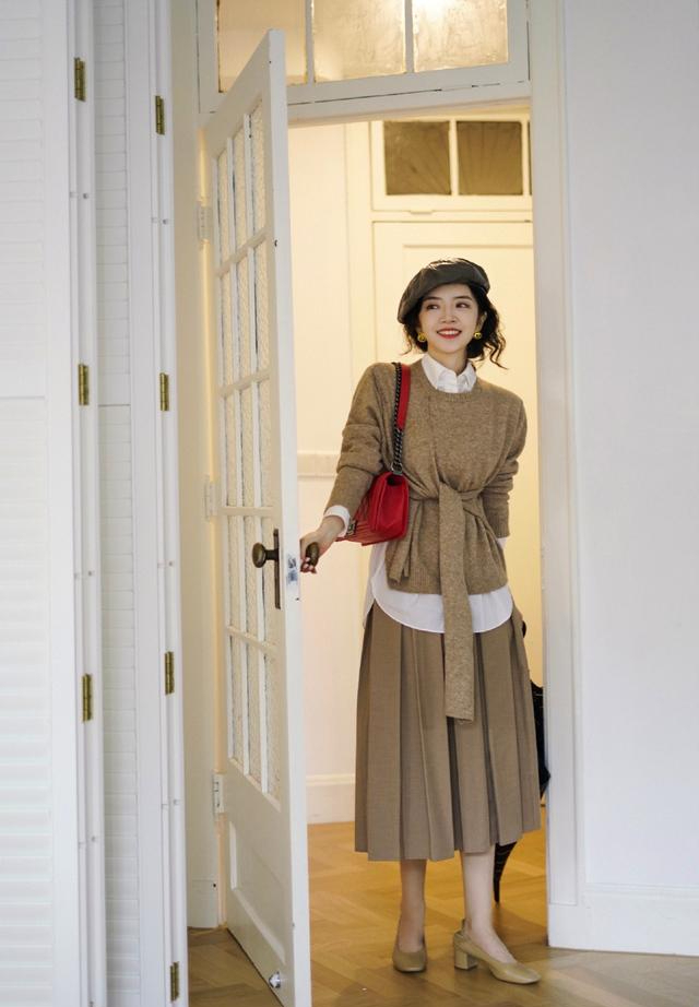 對於我們普通大眾女性們來說,皮膚天然白皙透亮的畢竟是少數,大部分是暗沉或是偏黑的狀態,那麼可以選擇沉穩大氣的大地色毛衣疊穿法。內搭一件純白色的襯衫,配色清淺柔和,很是恰到好處地襯托出不俗的氣質。一款紅色的包包點綴,不僅能夠起到局部亮色的效果,更能夠增添時髦亮點!