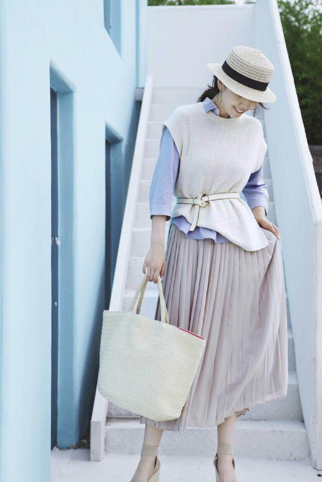 一直以來,撞色疊穿法都是很受歡迎的存在,溫柔的米色針織衫疊穿白色的襯衫,配色溫柔大方,十分的吸睛,適合三四十歲的女性們穿。 腰間用米色的腰帶收腰,能夠穿出好看的三七分身材比例,顯高挑、顯氣質。