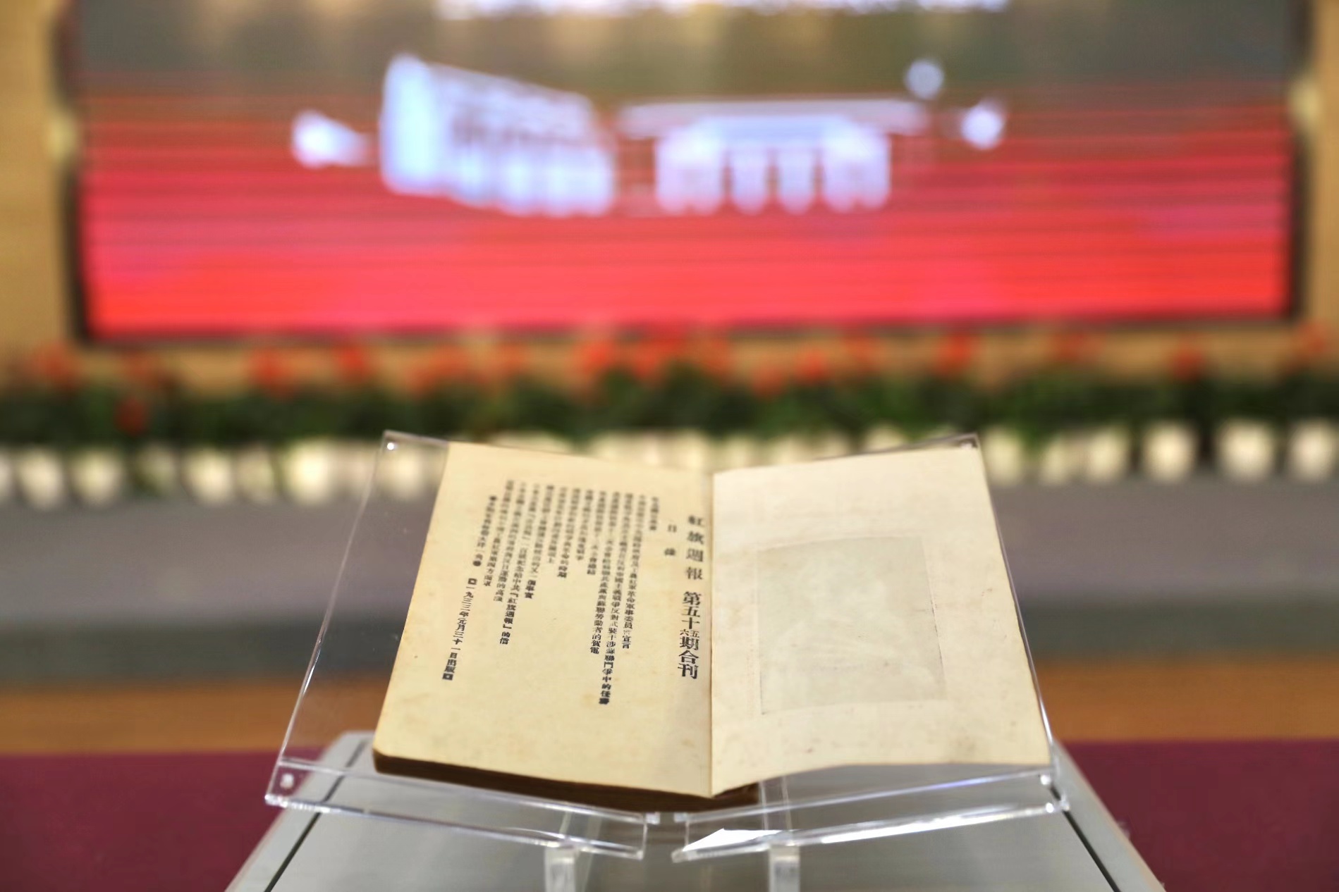 這本《紅旗周報》第五十五、五十六期合刊,出版於1933年1月31日,以「《摩登周報》第五十六期」作為偽裝封面。當時在白色恐怖籠罩下,為躲避查禁,共產黨人和進步人士編寫的革命出版物往往採取偽裝封面的形式披上「馬甲」。據介紹,書刊文獻的偽裝封面是特殊年代的特殊產物,見證了那個年代的艱險龐雜,也見證了革命者英勇鬥爭的智慧與勇氣。