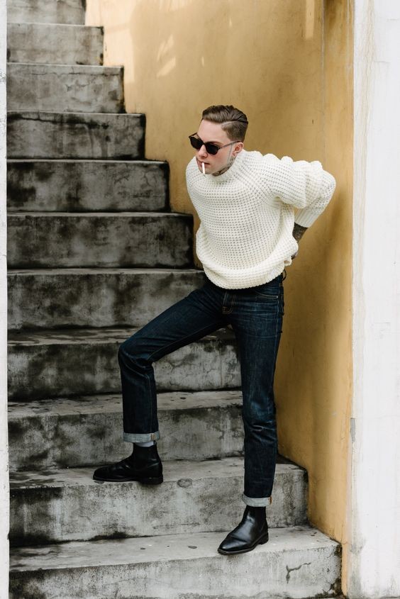 ①切爾西靴搭配毛衣,秒變秋冬暖男
