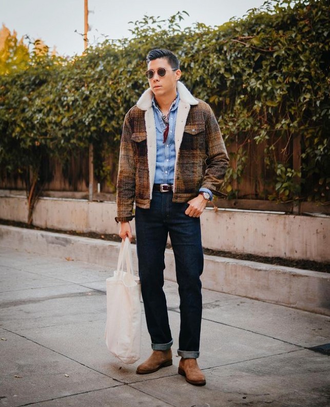 同理,面對一雙搭配難度稍微高一些的咖色切爾西靴,也不要苦惱。按照這樣的搭配法則,同樣能夠發揮靴子的最大時尚價值。如果想要造型色彩更加豐富一些,上衣也不一定非要選擇純色系,只要是靴子的同色系單品都可以。