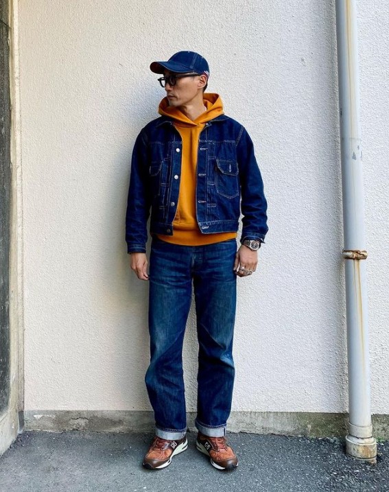 當然,如果你追求吸睛亮眼的造型,也可以選擇亮色的內搭來與之配合,同樣不會出錯,還能夠讓搭配看起來更出眾。即便是單穿時都令人有些難以駕馭的橙色連帽衛衣,在搭配深色牛仔夾克作為外套時,都顯得得體而又不失時髦。亮眼的配色與牛仔的深沉平衡得恰到好處,展現出非同一般的時尚潮流。