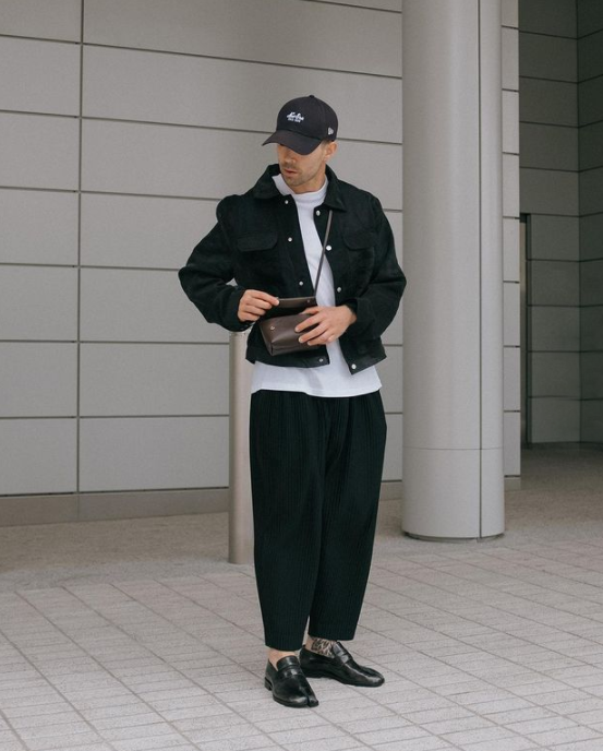 若想要掩蓋身材曲線,讓線條看起來更加流暢,寬鬆感十足的長褲也不失為一個優秀的選擇。不過在配合寬鬆感褲裝時,要注意長度的選擇,最好採用九分設計來凸顯出最細的腳踝,讓造型更顯幹練利落,大大強化潮酷氣息,打造潮男既視感。