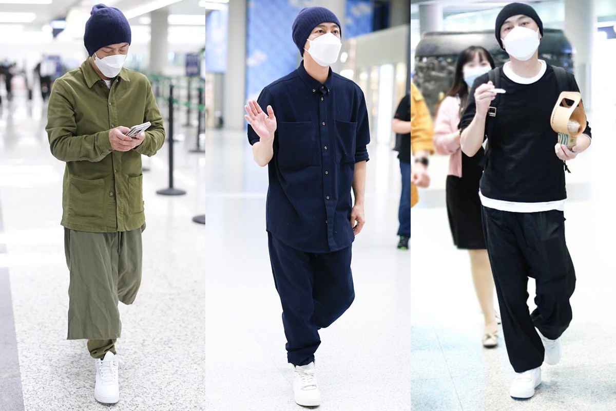 而寬鬆感十足的長褲更不必多說,一方面直筒的褲身會顯得雙腿勻稱修長,另一方面柔和感十足的材質與寬鬆的版型又添休閒氣息,使搭配變得簡約而不簡單。而張衛健標誌性的針織帽不僅讓造型變得更加完整,也更添了幾分潮男風尚,打造出相當時髦的穿搭效果。