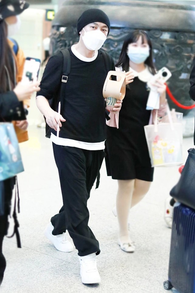 雖然上下裝都選擇了純黑色搭配,但造型並不顯沉悶厚重。一方面,版型的寬鬆感能夠與色彩進行平衡,呈現出休閒隨意范效果,而另一方面,小白鞋加入又構成的色彩對比,打造出上深下淺的配色,讓體態看起來更加輕盈有活力。