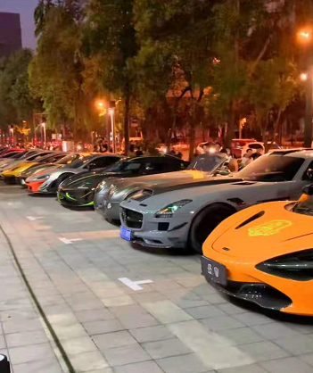 當天某酒吧開業,門口停了一排百萬級豪車,看得人眼花繚亂。