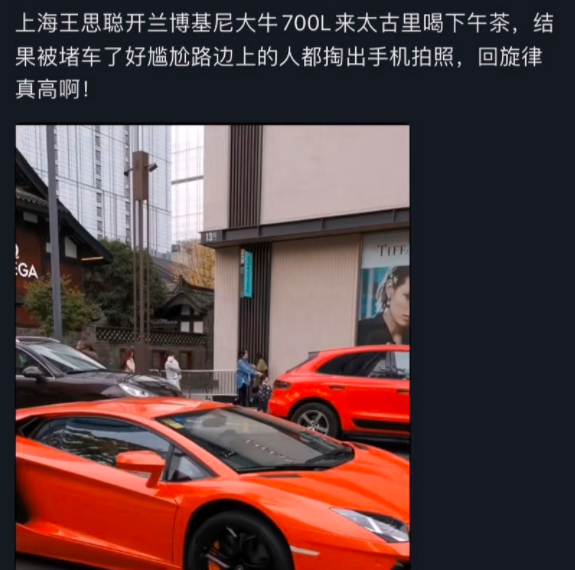 開著豪車出行被圍觀,路上直接塞車。據說他當天去喝下午茶,喝茶的地方不是誰都能隨便停車的,日均消費要達到十萬元以上,才可以把車子停在二樓。