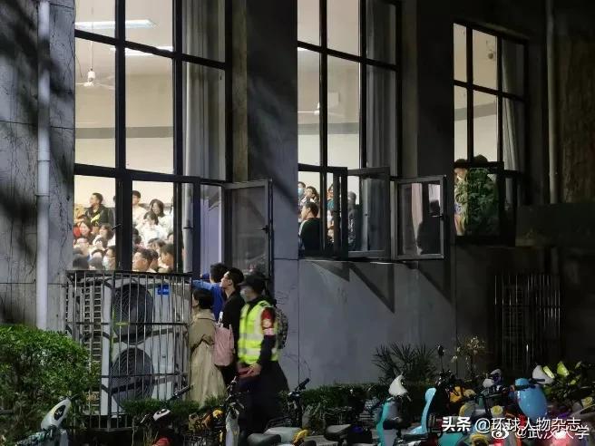 在武漢大學微博曬出的照片裡,不少學生站在花壇裡踮著腳聽講座,還有學生扒在與教室相鄰的二層平臺上。喻豐是回家後才看到這些,同時也看到了網友們或調侃或質疑的評論。