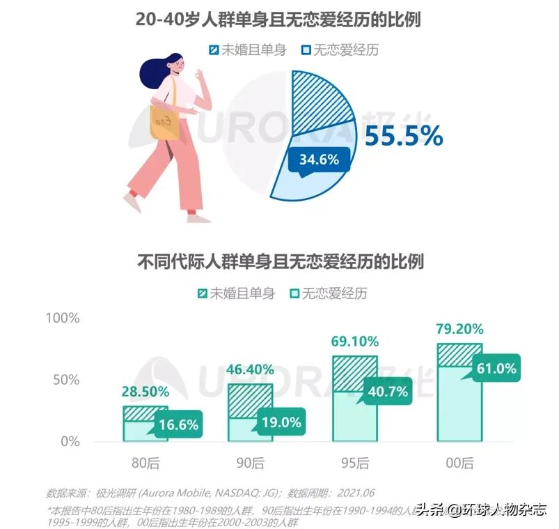 談戀愛到底需不需要教?這並不是一個新近被提出的問題,但新生代,特別是「Z世代」的年輕人們,可能更需要「參考答案」。第三方機構極光調研今年8月發布的一份報告顯示,適婚年齡(20-40歲)人群中,55.5%的人目前為單身狀態,其中有34.6%的人是從未談過戀愛的「母胎solo」。與「80後」「90後」相比,「95後」和「00後」單身及「母胎solo」的比例更高。