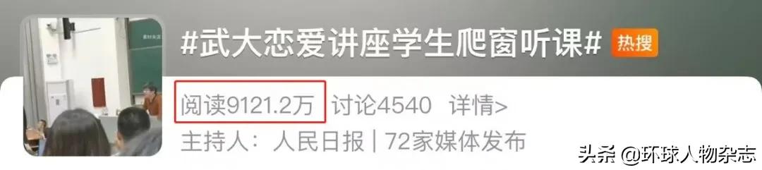 大家或許不久前還在微博上看到過這個話題——武大戀愛講座學生爬窗聽課。截至目前,它在微博上的閱讀量已經超過9000萬。