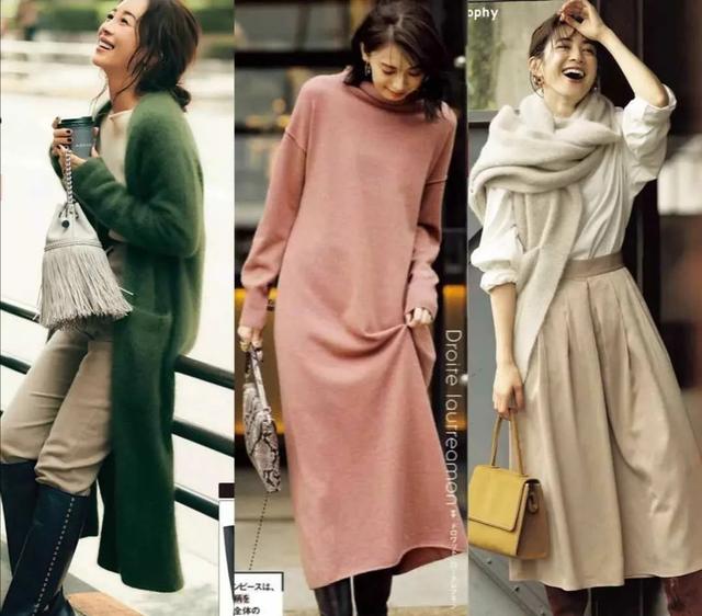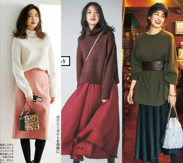 把厚實的針織毛衣和半身裙結合起來,就能夠弱化它因為面料厚重而產生的臃腫感,並且裙裝自帶的那種優雅的氣氛,絕對能夠讓女性的氣質提升到一個新的高度。