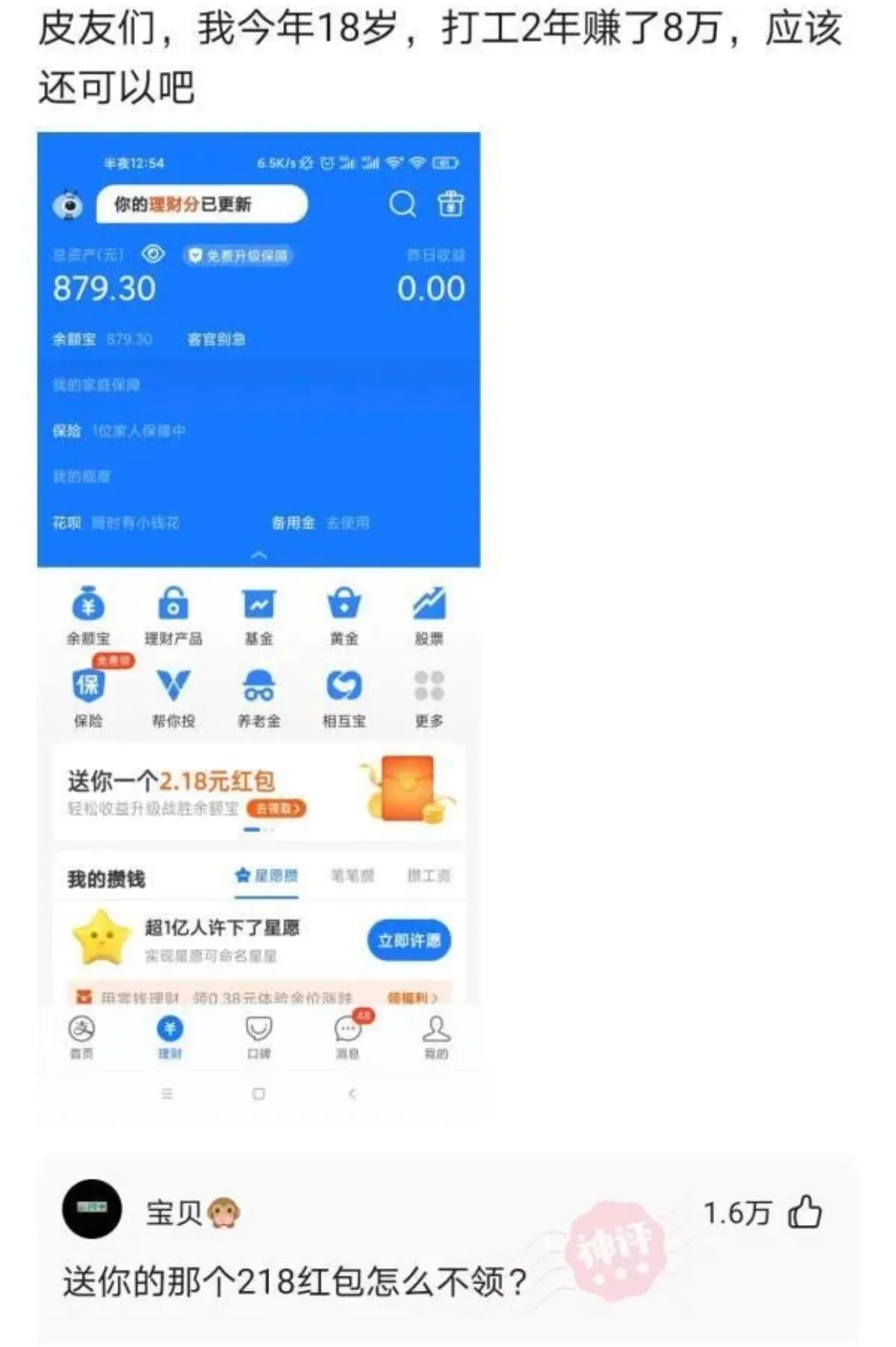 朋友,你這點錢拿去看眼科應該不夠吧?[大笑][大笑][大笑]