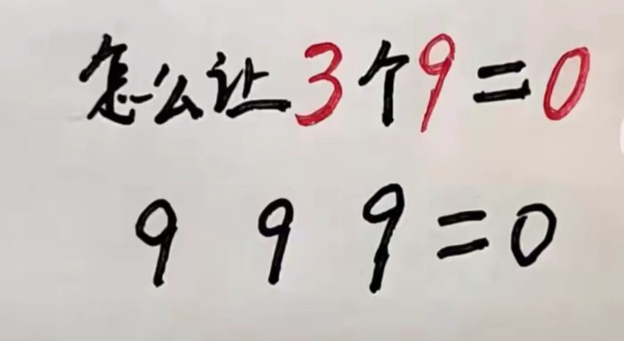 考大家一個腦筋急轉彎,怎麼讓3個9等於0?想出來的小夥伴們記得幫忙發到評論區裡哦,非常非常的感謝[玫瑰][玫瑰][玫瑰]