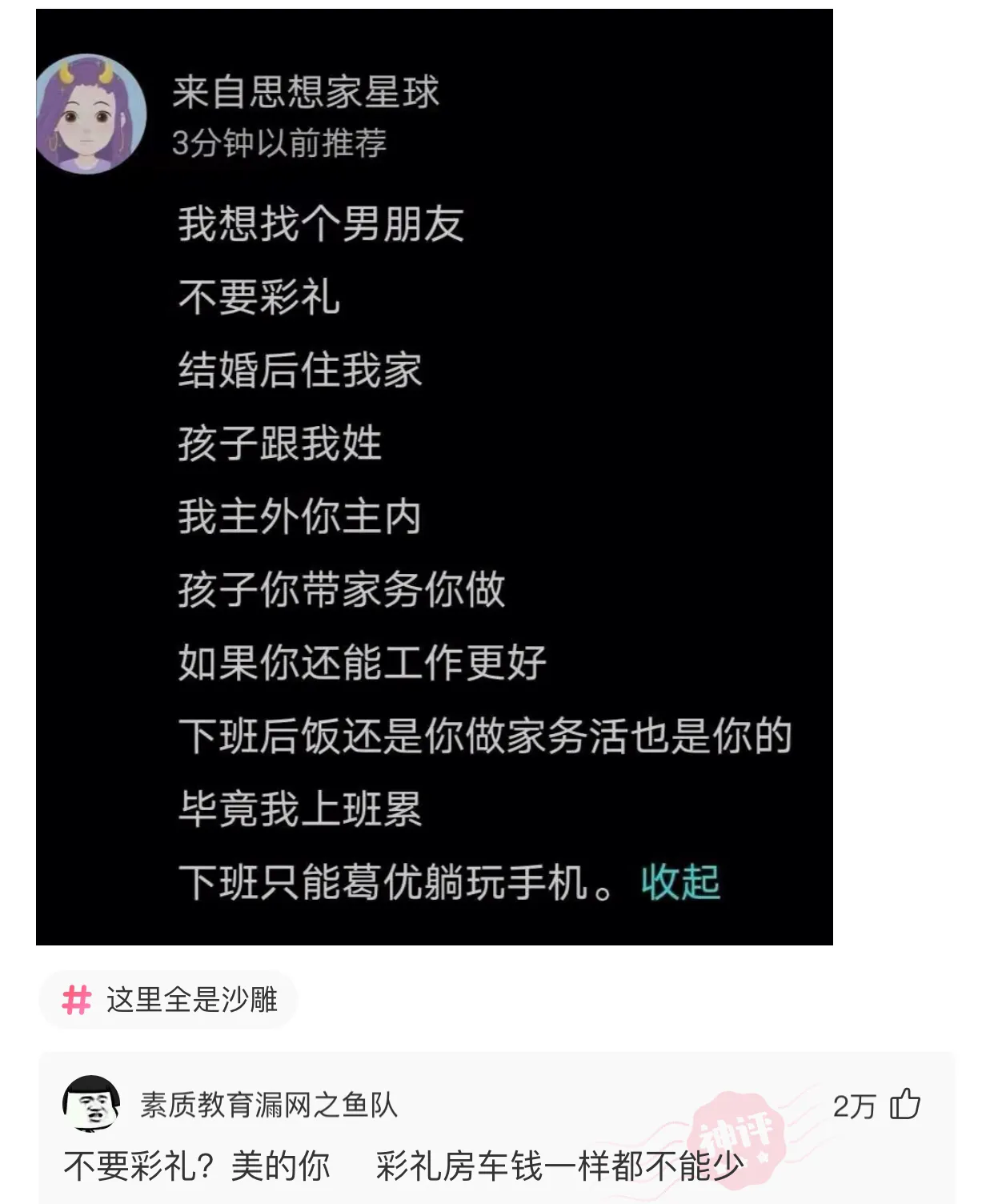 友友們看過來,看到沒,就是這群人拔高了全國彩禮的平均水準[撇嘴][撇嘴][撇嘴]