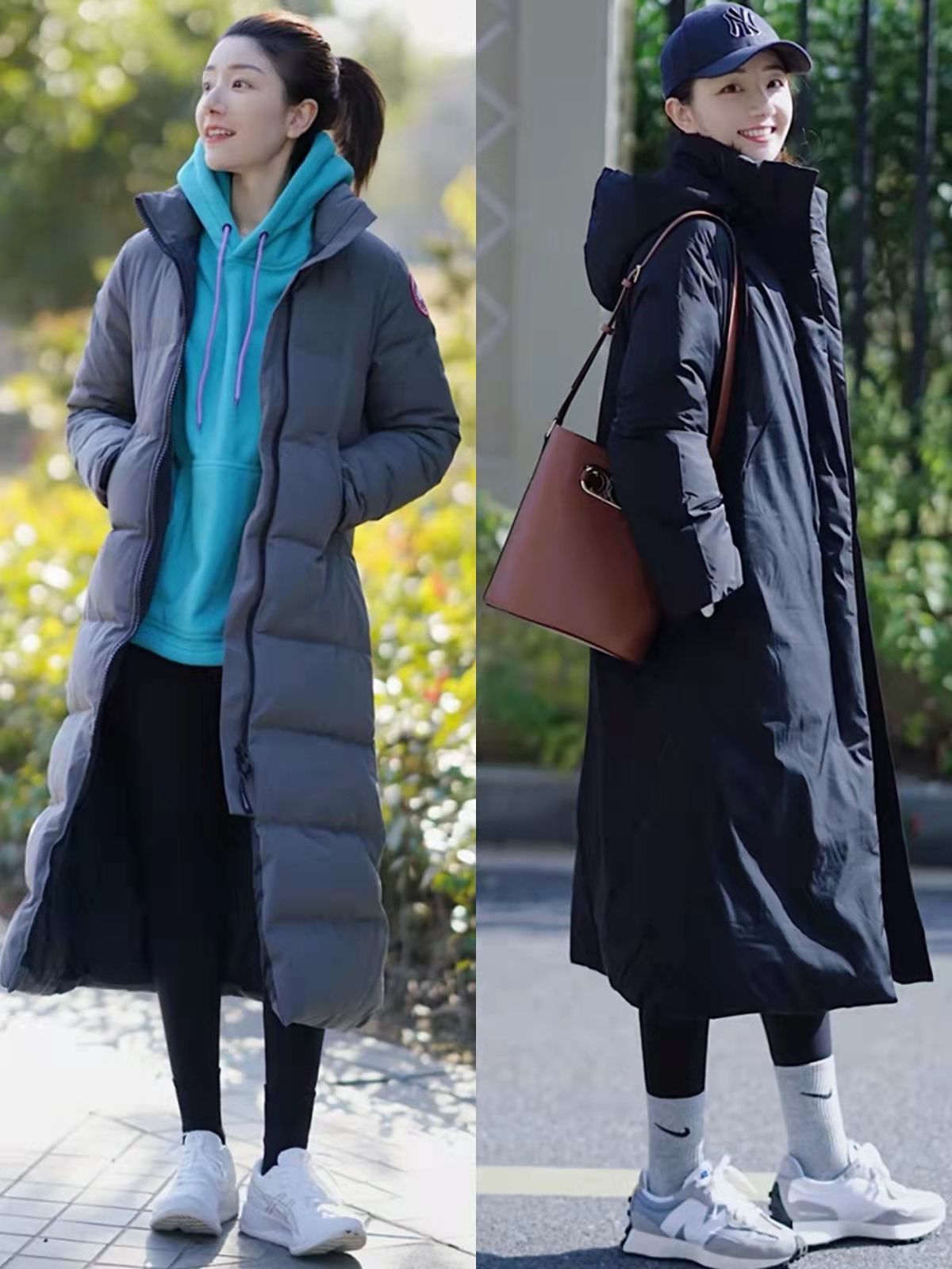其中內搭長度最好比羽絨服長出一截,豐富穿衣層次與遮擋臀胯區域兩不誤。