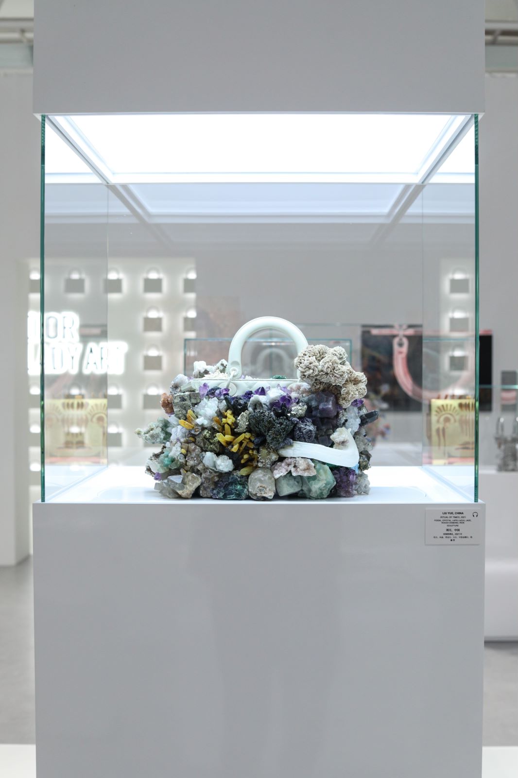 蔡雅玲、梁曼琪、劉月、鄔建安和張鼎五位藝術家對LADY DIOR手袋的創作此前已經在深圳的展覽中展出,王鬱洋的作品則在此次的上海展覽中首次現身。每一件以LADY DIOR手袋為靈感打造的藝術作品都以雕塑或裝置藝術的形式呈現。