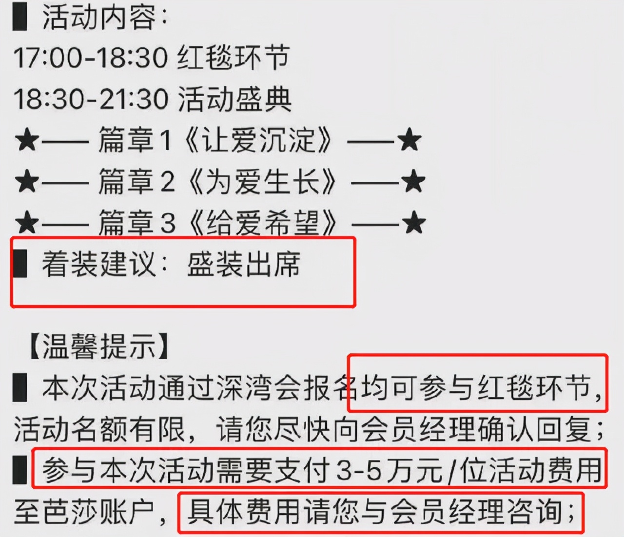 以往出席芭莎晚宴的,都是時尚圈、娛樂圈的領軍人物,但如今,素人花錢即可體驗走紅毯。不知道是不是因為慈善芭莎的主辦方缺錢,他們向某私人俱樂部會員發出官方邀約,只需3萬就可以體驗走紅毯,一些網紅慕名而來,讓場面變得更加混亂。