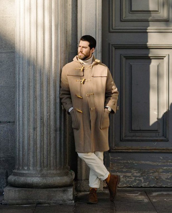 設計款大衣對於提升造型的豐富程度更有幫助,特別是型男架式十足的雙排扣大衣。卡其色的選色本來已經氣場很強,雙排扣的設計加上肩部和腰身的立體裁剪,使得它更加出眾,對於展現型男氣質很有幫助。