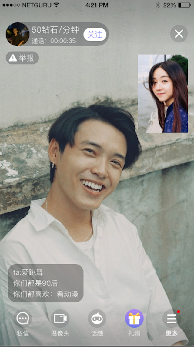 相比匿名社交,可以更清楚地知道在鏡頭的那一邊,到底是「人」還是「鬼」,讓交友變得更真實,讓用戶少一些欺騙和招術。